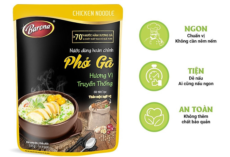 Nước Dùng Phở Gà Barona 145g tươi ngon chuẩn vị không cần nêm nếm