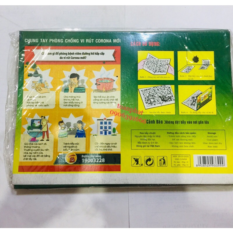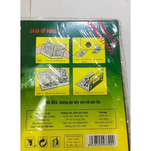 [Cách sử dụng] Bạn chỉ cần mở miếng dính chuột ra, để ở nơi hay xuất hiện chuột, thả thêm tý thức ăn để làm mồi nhử. Bằng cách đơn giản này, bạn có thể loại bỏ được cả đống chuột trong nhà.