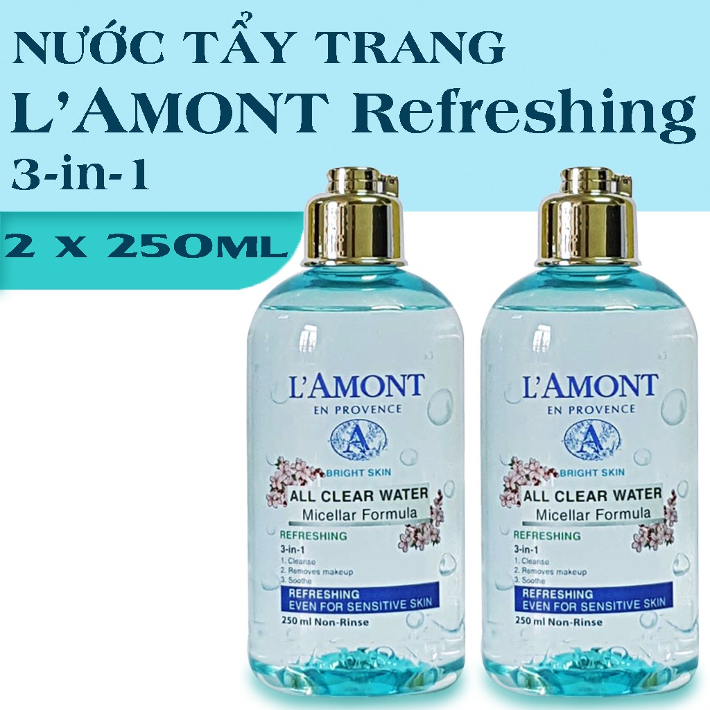 Giới thiệu Combo 2 Nước Tẩy Trang LAmont Tươi Mát Sáng Da All Clean Water Micellar Fomula Refreshing 250ml/chai