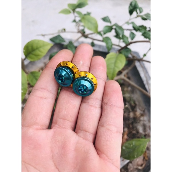 Combo gồm 2 ốc titan lục bảo + long đền nhôm vàng , xanh , đỏ