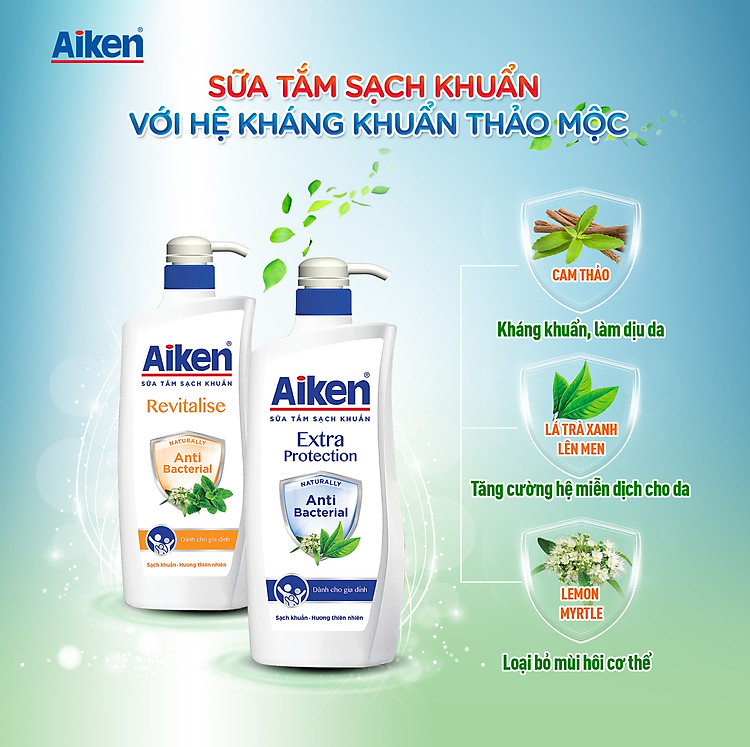 Sữa Tắm Aiken Sạch Khuẩn Chiết Xuất Trà Xanh Thiên Nhiên 850g được đánh giá là một trong những nhãn hiệu chuyên về các sản phẩm diệt khuẩn hàng đầu với nhiệm vụ bảo vệ sức khỏe cho người tiêu dùng. Sản phẩm sữa tắm Aiken sạch khuẩn đã nhanh chóng ra mắt tại thị trường Việt Nam nhằm đáp ứng nhu cầu chăm sóc, bảo vệ cơ thể khỏi vi khuẩn có hại của người tiêu dùng, giúp vệ sinh cơ thể sạch sẽ và loại bỏ 99,9% vi khuẩn có hại trên cơ thể sau 1 ngày tiếp xúc bên ngoài.