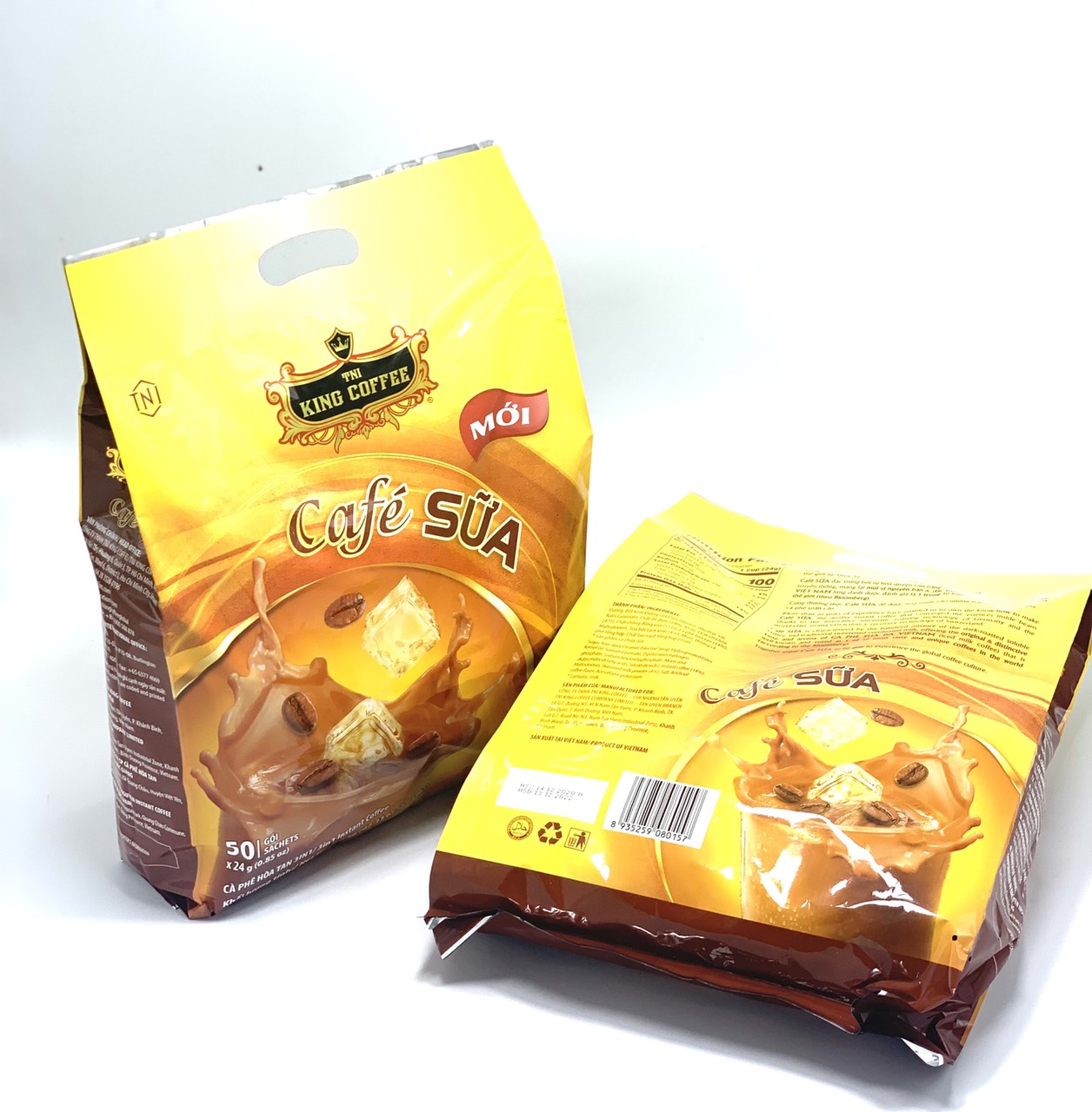 Cà phê sữa hòa tan King Coffee Túi 50 gói được tuyển chọn từ những hạt cà phê tốt nhất trên vùng đất Buôn Mê Thuột trứ danh kết hợp với vị sữa thơm ngọt, cho bạn một tách cà phê sữa hấp dẫn.