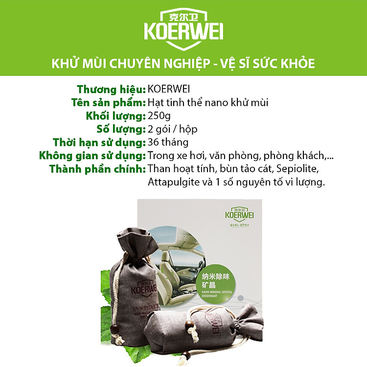 Giới thiệu Hạt tinh thể nano khử mùi KOERWEI 250g*2