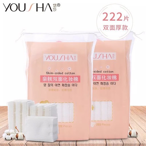 Combo 222 bông tây trang Yousha. Túi đựng 222 cái có dây thắt thiết kế tiện lợi, đơn giản giúp buộc miệng túi chống bụi. Thấm hút nhanh chóng, tẩy sạch bụi bẩn li ti mà không làm da bị tổn thương. Thiết kế nhỏ gọn, dễ dàng mang theo và sử dụng