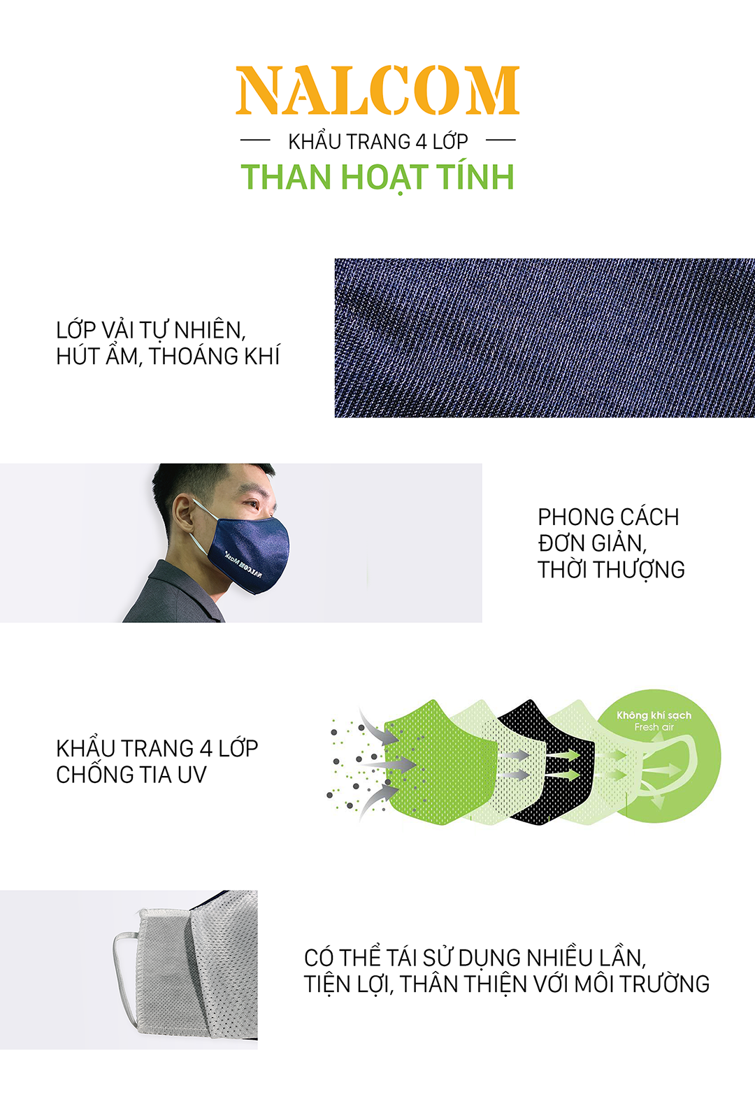 KHẨU TRANG VẢI THAN HOẠT TÍNH KHÁNG KHUẨN [NALCOM MASK] - BẢO VỆ HƠI THỞ CỦA BẠN