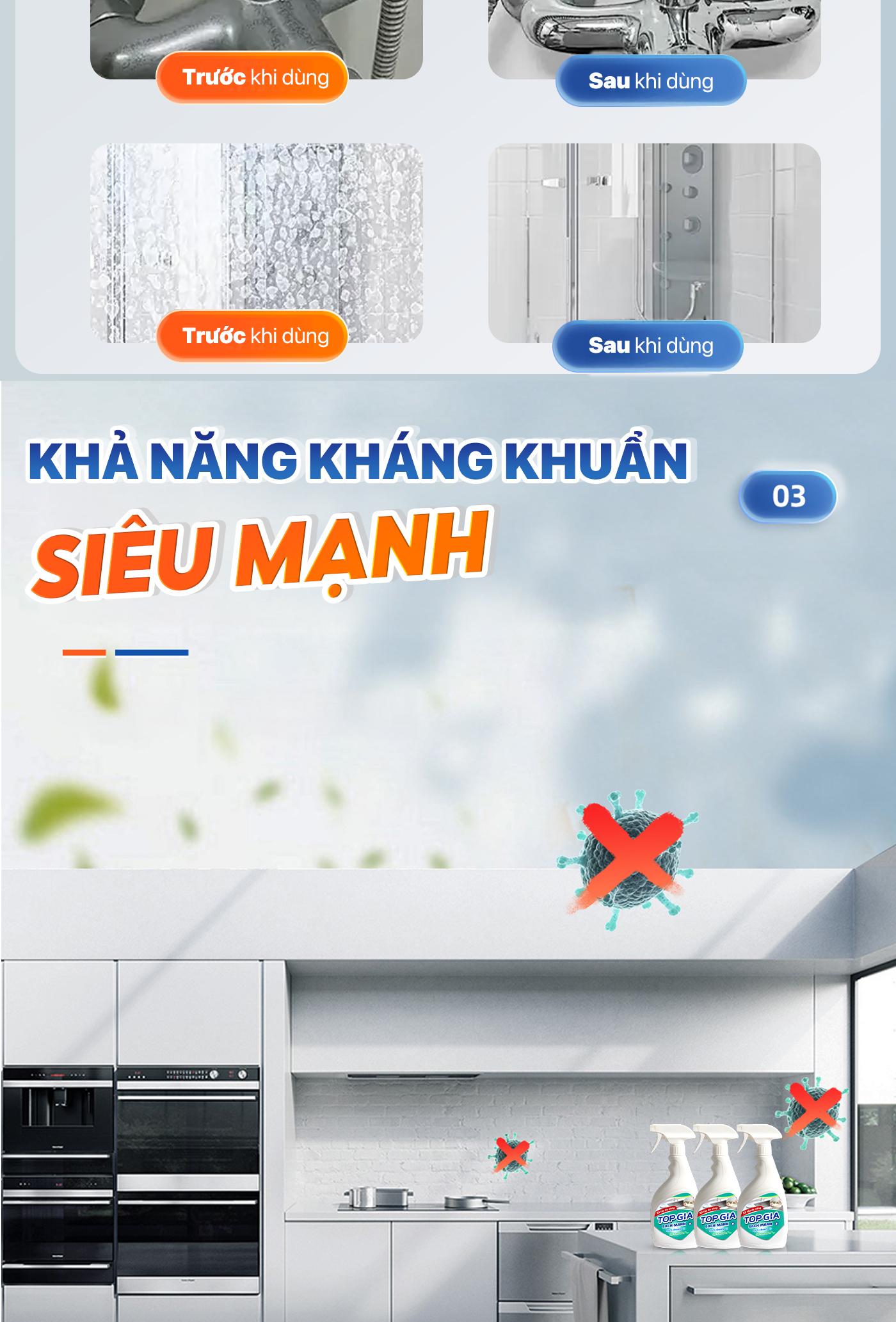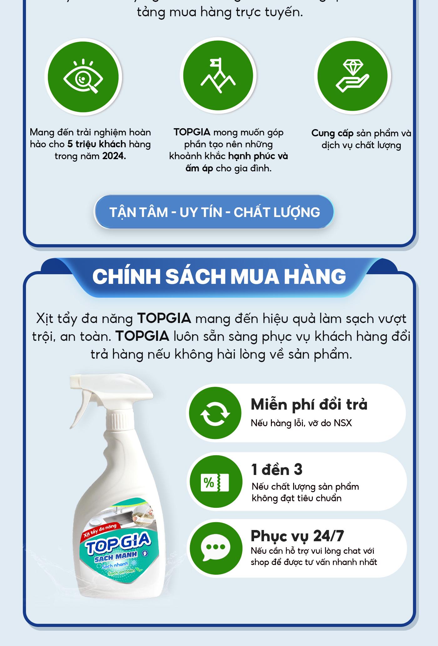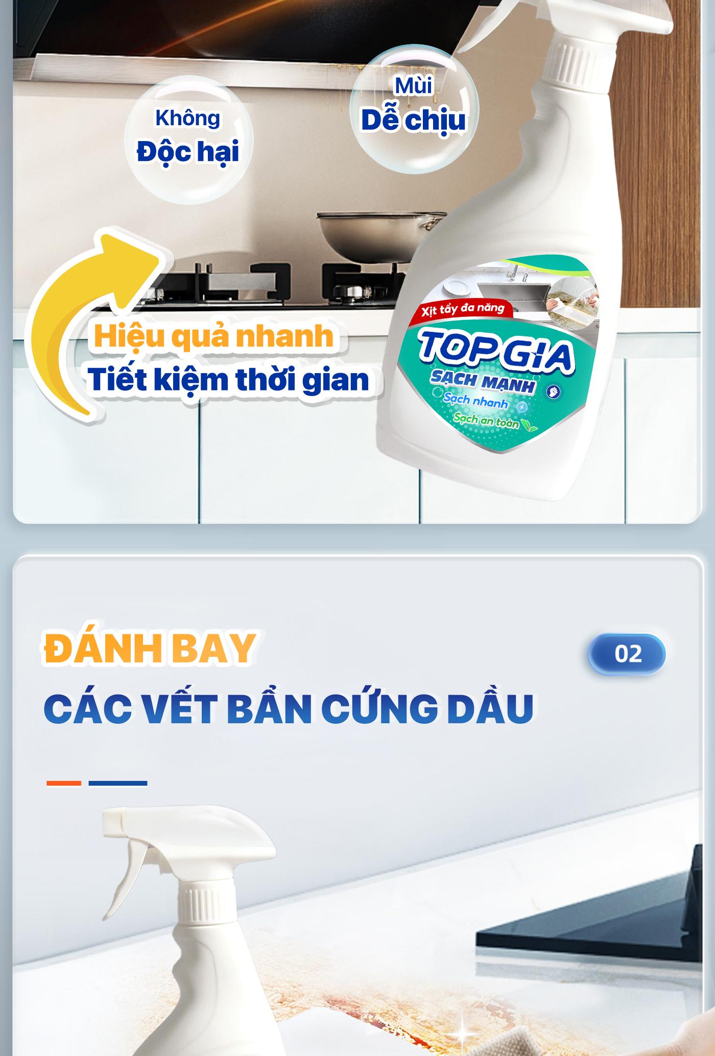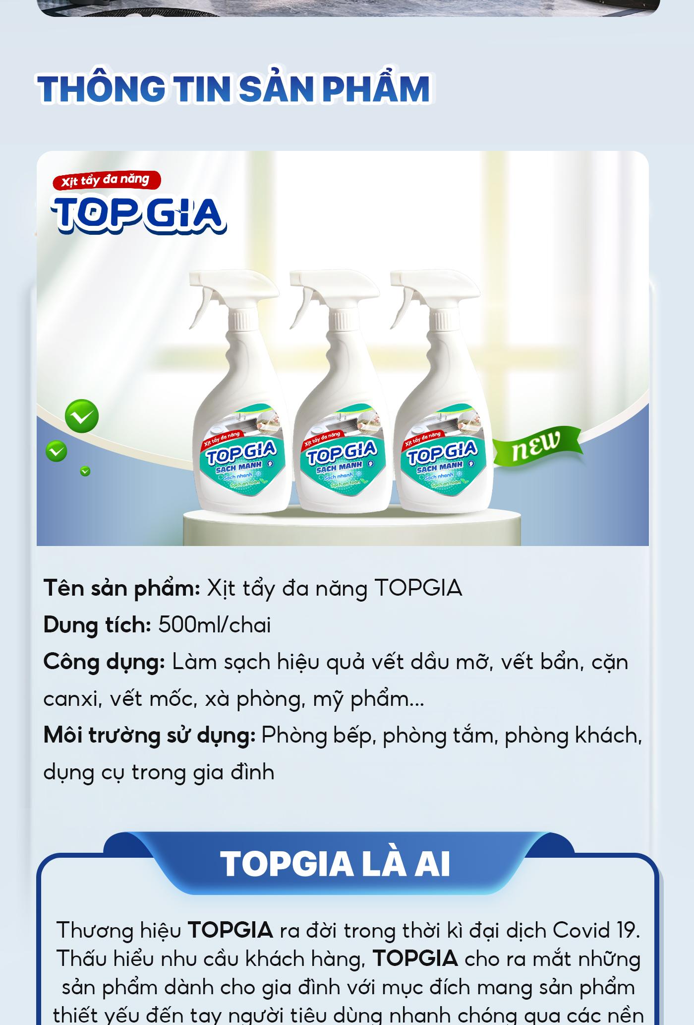 Combo 3 chai xịt tẩy đa năng TOPGIA làm sạch mọi vết bẩn, chai 500ml khử mùi, kháng khuẩn