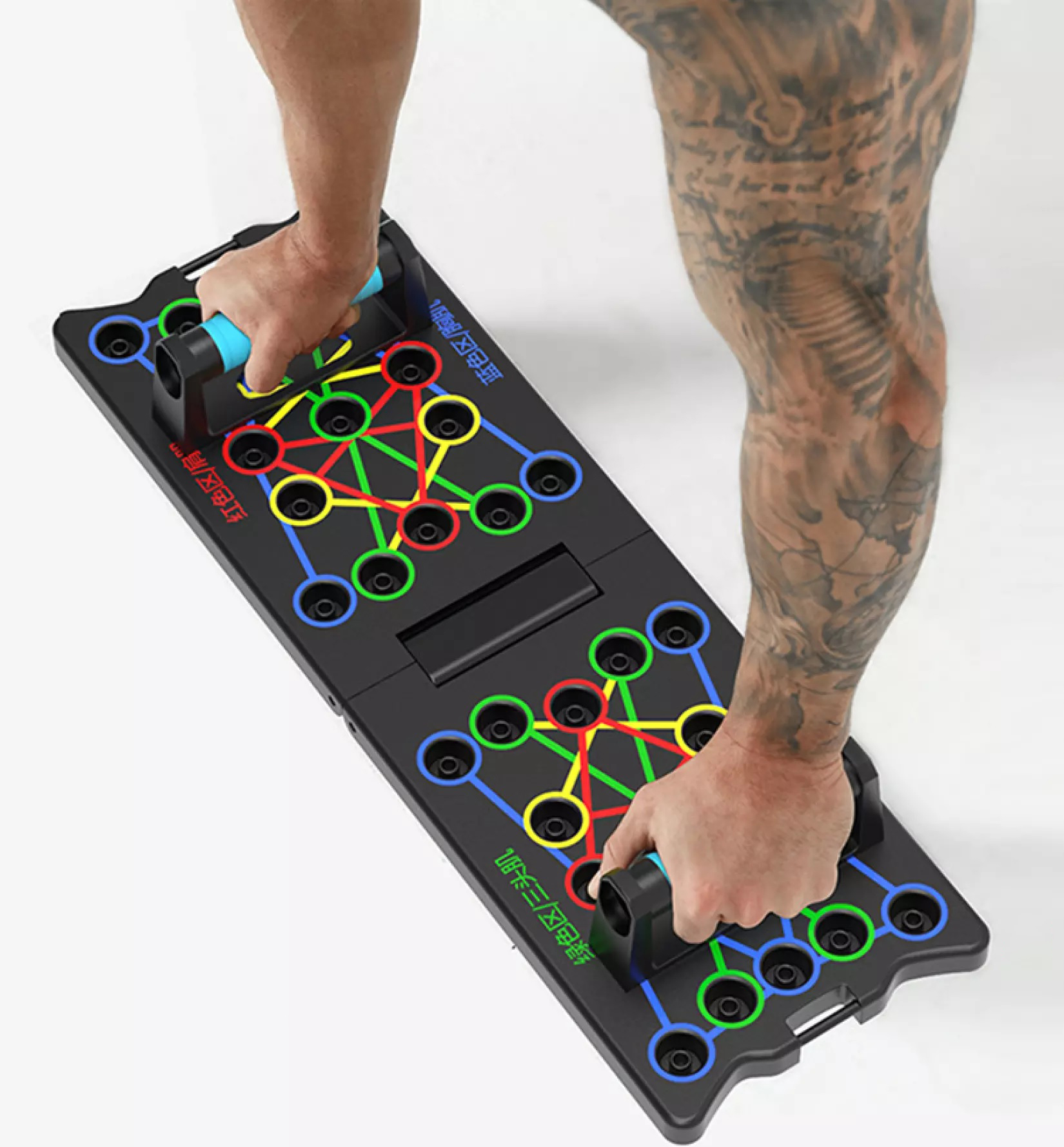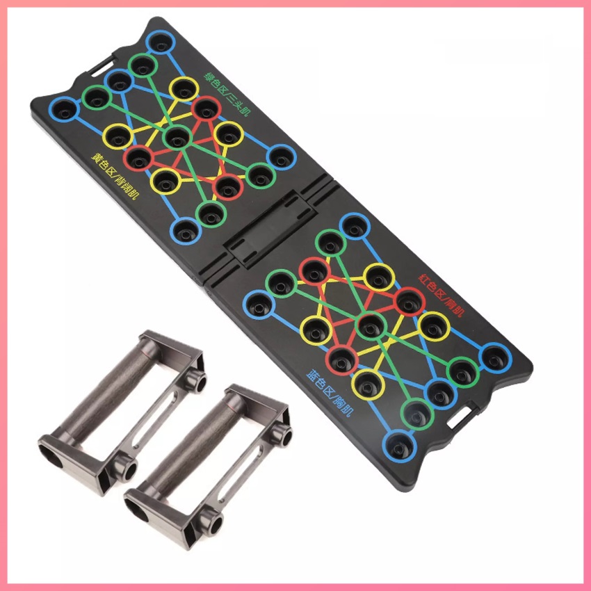 Giới thiệu Combo 3 dụng cụ hỗ trợ tập Yoga hiệu quả : 1 bảng hít đất chống đẩy 34 lỗ ( tặng kèm giấy hướng dẫn tập và miếng dán chống trơn trượt )+ 1 bộ 5 dây ngũ sắc + 1 tập bụng chữ T - Chắc chắn bảng mầu đa dạng chịu lực tốt chống trơn trượt