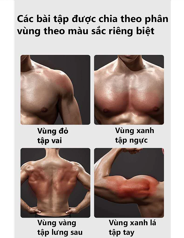 - Thiết kế với 4 màu tương ứng với 4 khu vực các tay cầm bỏ vào vị trí muốn tập tương ứng