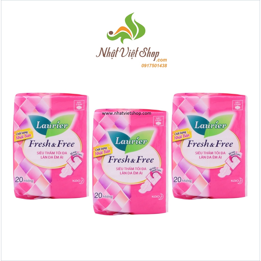 Sức Khỏe > Chăm sóc cá nhân > Chăm sóc phụ nữ > Băng vệ sinh có cánh & không cánh || Combo 3 Gói Băng Vệ Sinh Laurier Fresh & Free Ban Ngày Dày Cánh (22cm-20M)