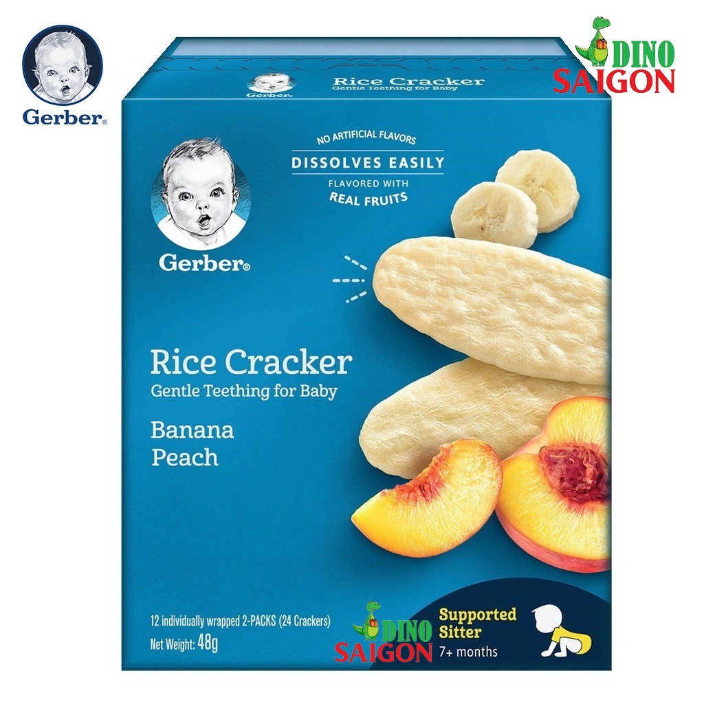 Giới thiệu Combo 3 Hộp Bánh Gạo Ăn Dặm Gerber 48g Gồm 2 Vị Dâu Táo Cải Bó Xôi Và 1 Vị Chuối Đào