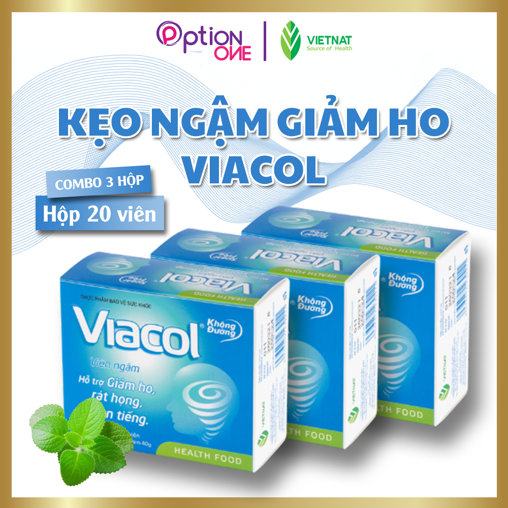 [COMBO 3 HỘP] KẸO NGẬM VIACOL THẢO MỘC VIETNAT KHÔNG ĐƯỜNG GIẢM HO ĐAU HỌNG - 20 VIÊN/ HỘP