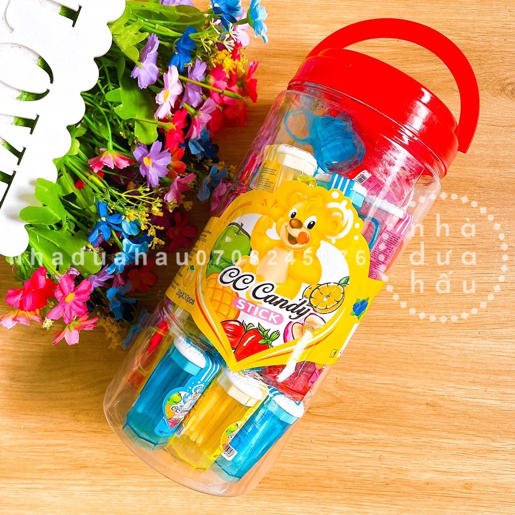 Combo 3 hủ kẹo tăm vị trái cây mini xinh xắn đáng yêu Hongkong hủ 30gam