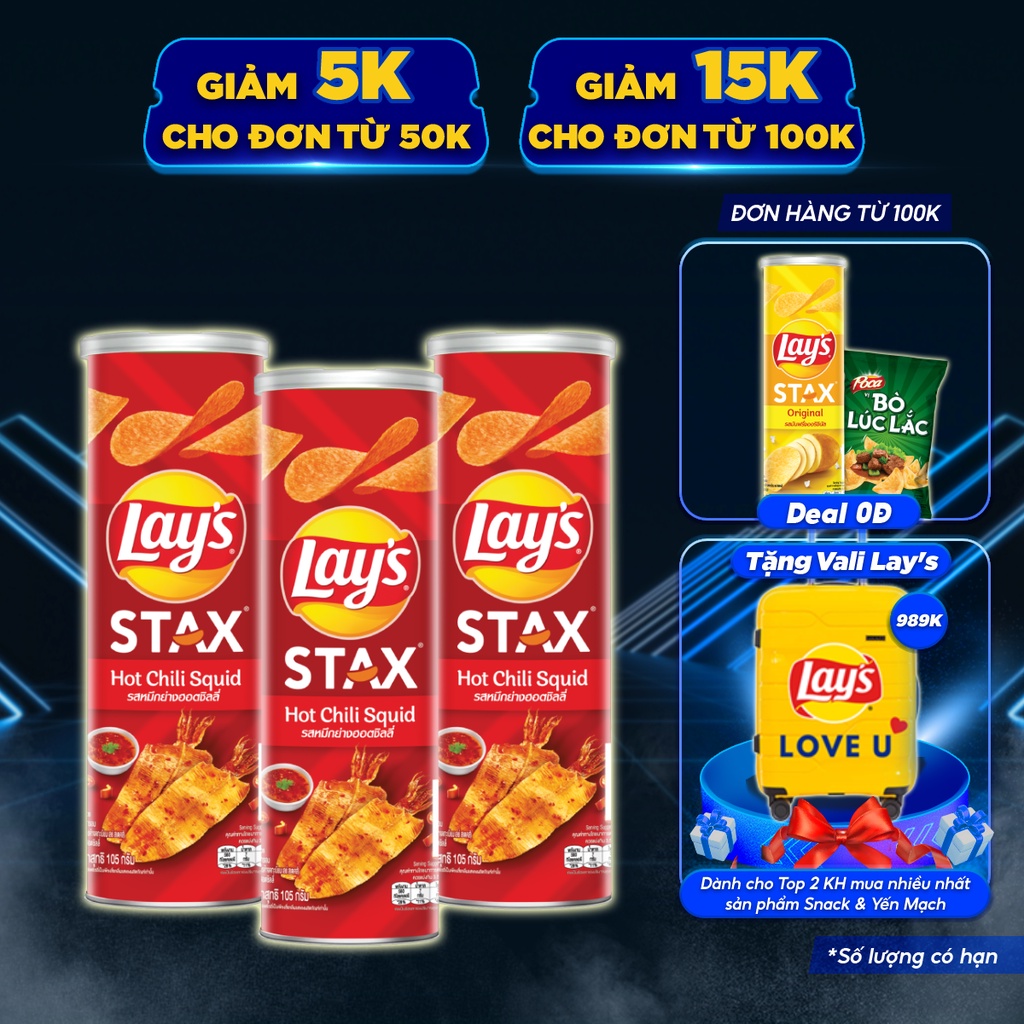 Thương hiệu: LAY’S® (Mỹ) Xuất xứ: Thái Lan Combo 3 Snack Khoai Tây Ống Lay's Stax vị Mực Sốt Cay 105g - nhập khẩu trực tiếp từ Thái Lan.