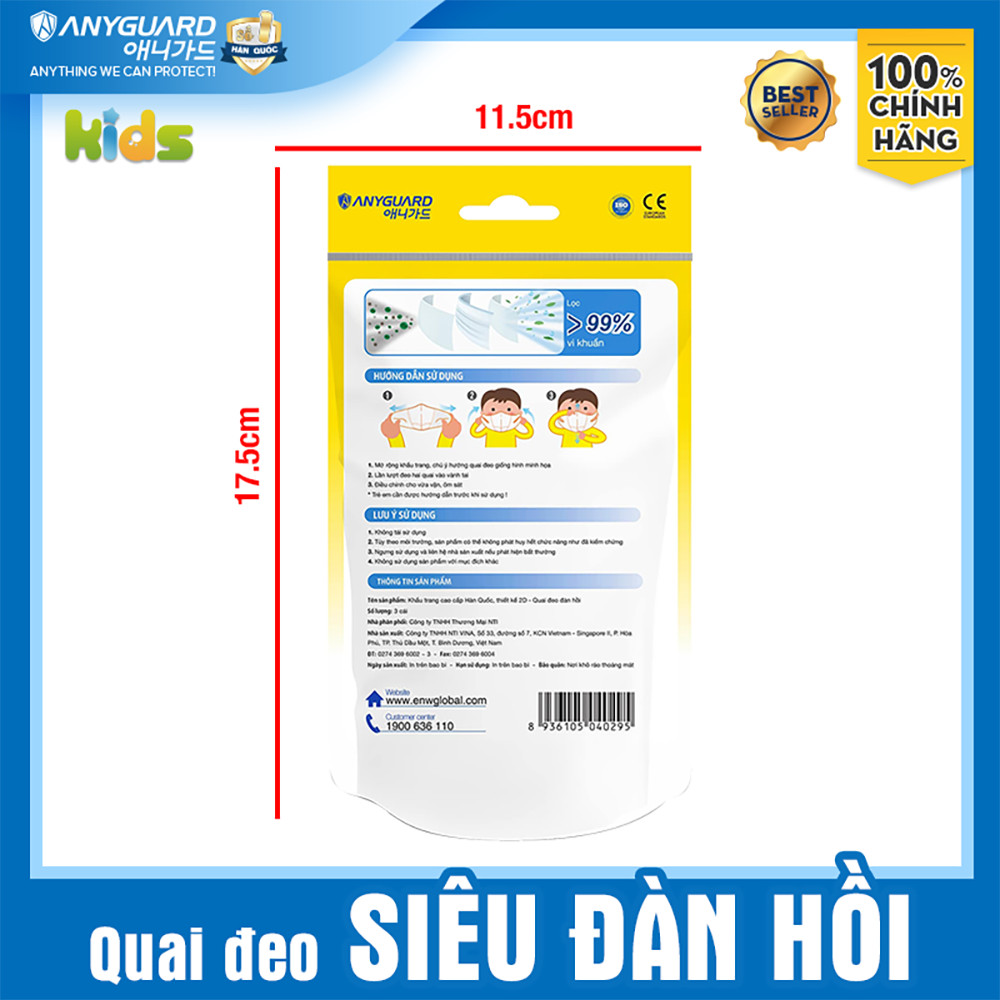 Giới thiệu ComBo (30 Chiếc) Khẩu Trang Trẻ Em Hàn Quốc Form 2D Anyguard Chính Hãng - Quai Đeo Siêu Đàn Hồi (10 gói) - 베이비 마스크 - Face Mask For Kids - ISO 9001:2015, ISO 13485:2016, QCVN 01:2017/BTC