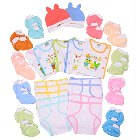 Set 37 món đồ cho bé sơ sinh bao gồm 10 tã, 10 bao tay, 10 bao chân, 5 áo sơ sinh, 2 nón.