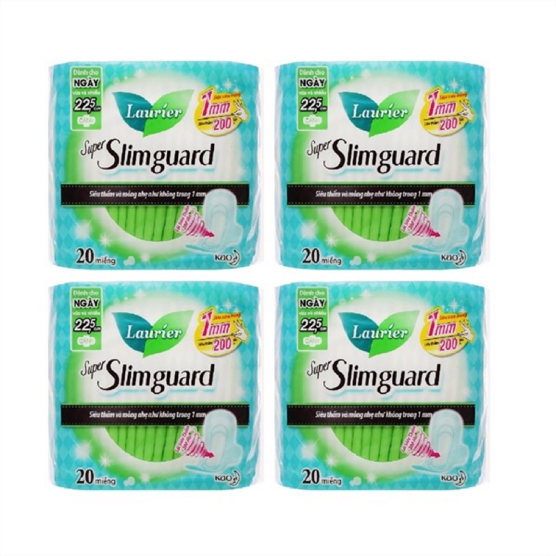 Giới thiệu Combo 4 Gói Băng Vệ Sinh Laurier Siêu Mỏng Cánh 1mm Super Slimguard Không Hương (22,5cm-20M)