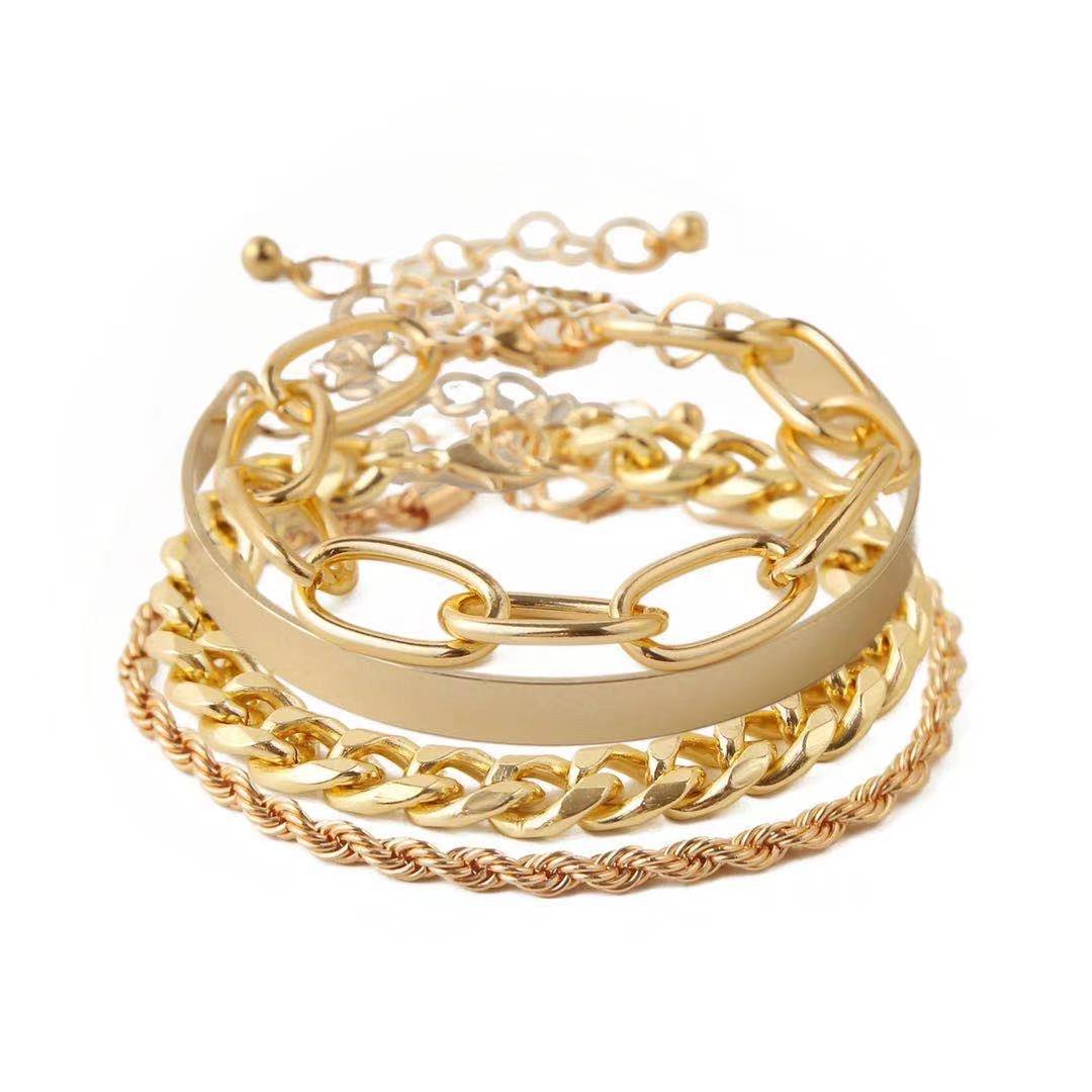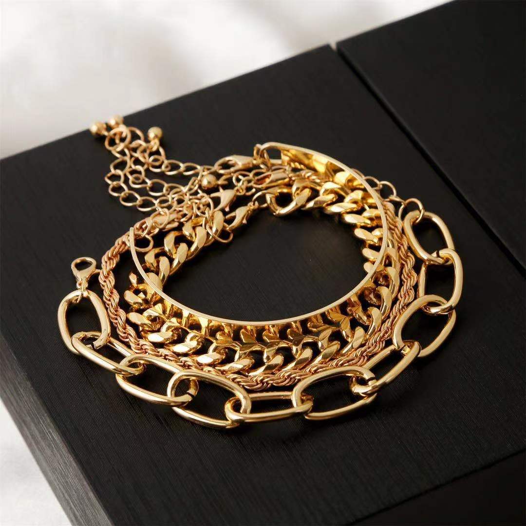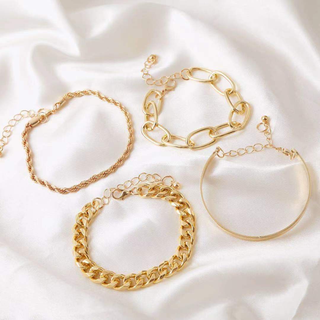 Combo 4 lắc tay Nam Nữ, hợp kim mạ vàng 18K, Phong cách Châu Âu, kèm hộp đựng Hoa Hồng