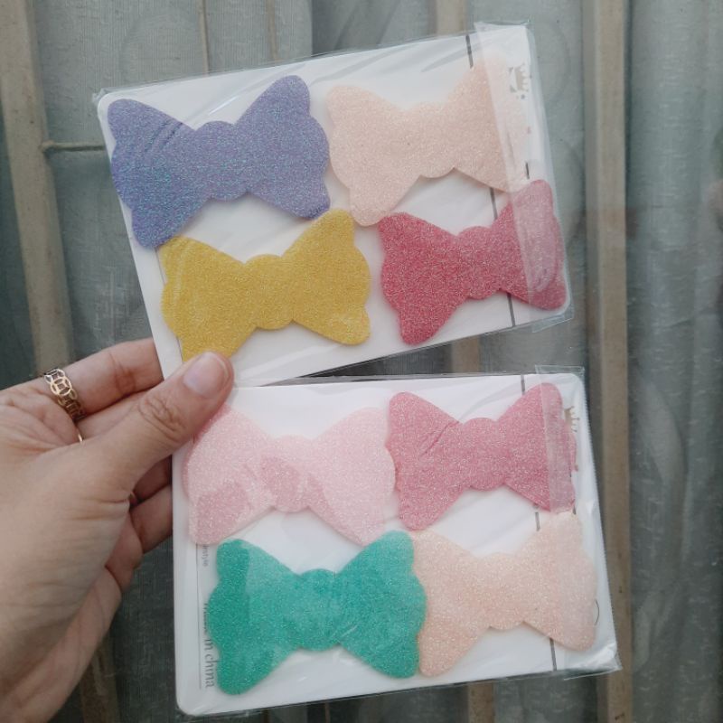 Phụ Kiện Thời Trang > Phụ kiện tóc > Khác || Combo 4 miếng dán mái màu có kim tuyến (màu ngẫu nhiên)