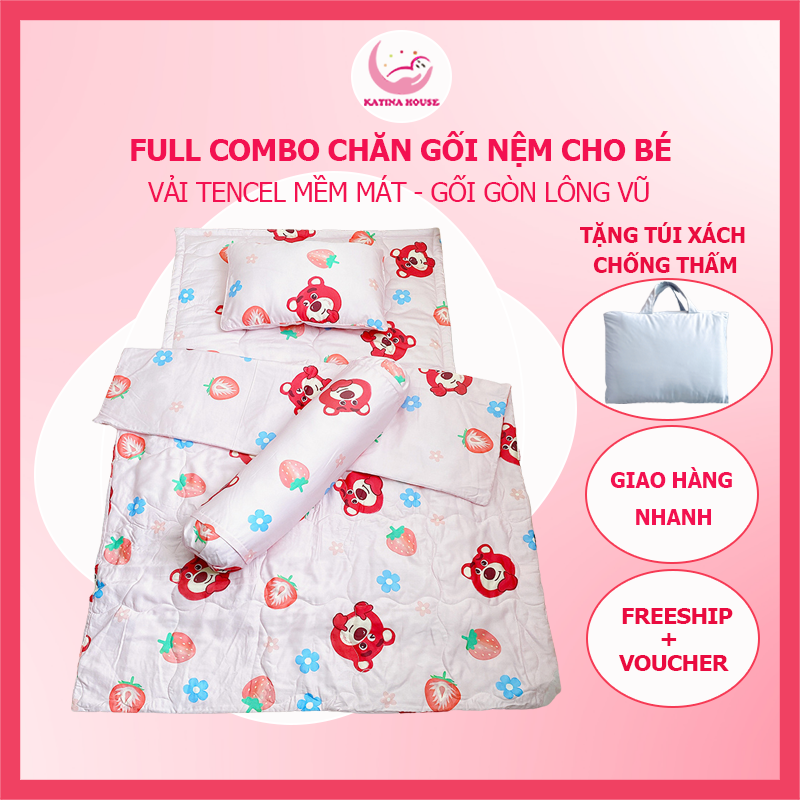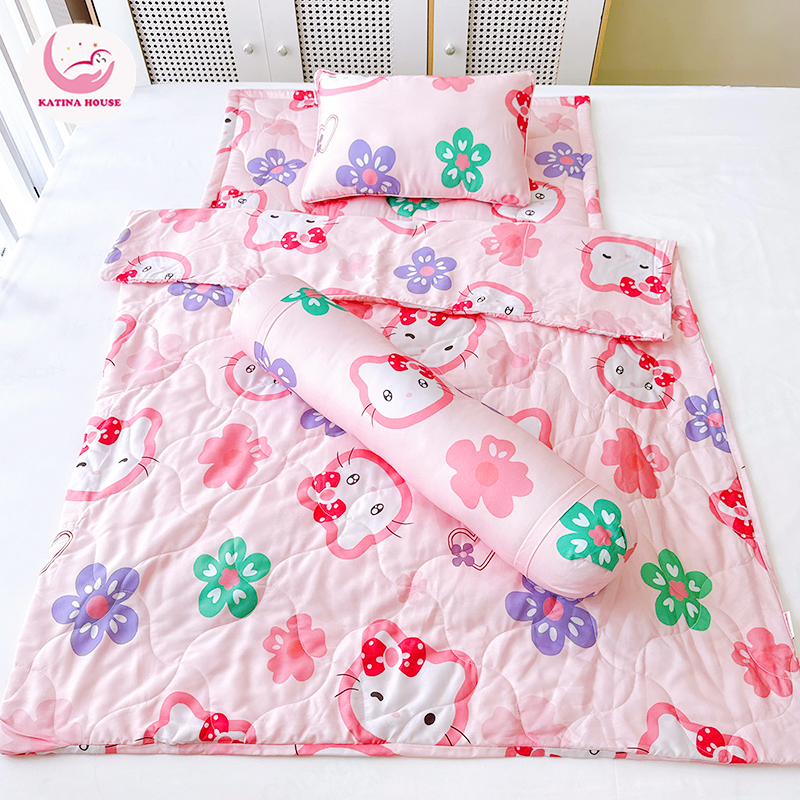 Combo 4 món Chăn gối nệm cho bé đi học vải tencel mềm mát, thấm hút tốt