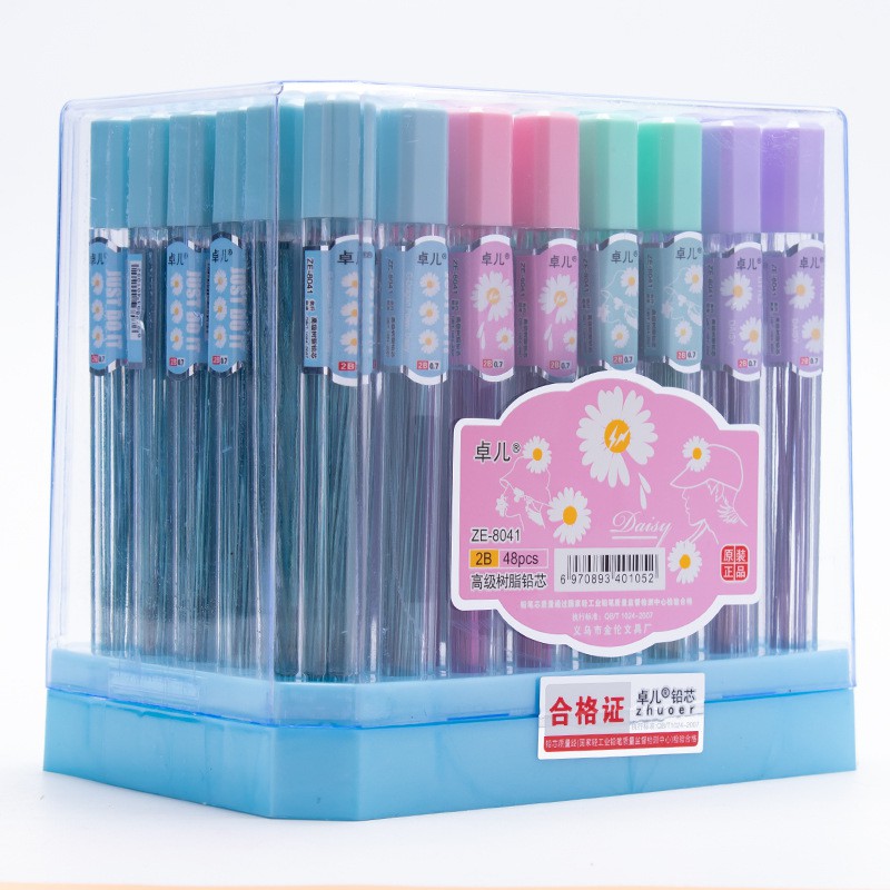 ruột bút chì bấm 0.5mm/0.7mm (15 ruột/ ống) thân hộp có nhiều màu sắc siêu dễ thương