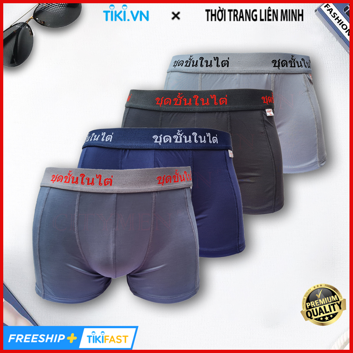 - Nguyên liệu: quần lót nam boxer thun lạnh lưng Thái mềm mại, thấm hút tốt, co dãn 4 chiều.
