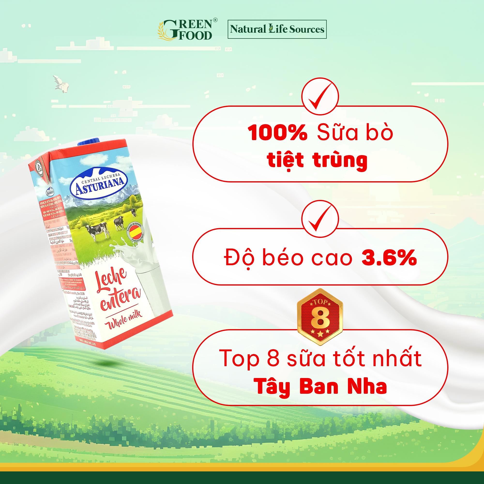 ► Sữa tươi tiệt trùng Asturiana nguyên kem, không đường được đóng hộp an toàn, hợp vệ sinh, thuận tiện cho việc sử dụng và bảo quản. Mỗi hộp tương đương 4 khẩu phần (250ml/cốc).