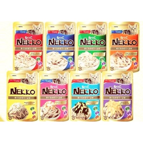 MÙI VỊ: Gồm các mùi vị thơm ngon theo màu như sau: - Nekko Xanh Lá: Cá Ngừ + Thịt Gà Sasami - Nekko Hồng Đậm: Cá Ngừ + Tôm Sú Và Sò Điệp - Nekko Tím: Cá Ngừ + Phô Mai - Nekko Xanh Dương Đậm: Cá Ngừ Nướng - Nekko Vàng: Cá Ngừ + Cá Cơm Shirasu - Nekko Đỏ: Cá Ngừ + Thanh Cua Kanikama - Nekko Cam: Cá Ngừ + Cá Bào Katsuobushi - Nekko Kitten – Xanh: Phi Lê Gà Xay Nhuyễn Với Sữa (Cho mèo con) - Nekko Kitten - Hồng: Cá Ngừ Xay Nhuyễn Với Sữa (Cho mèo con)