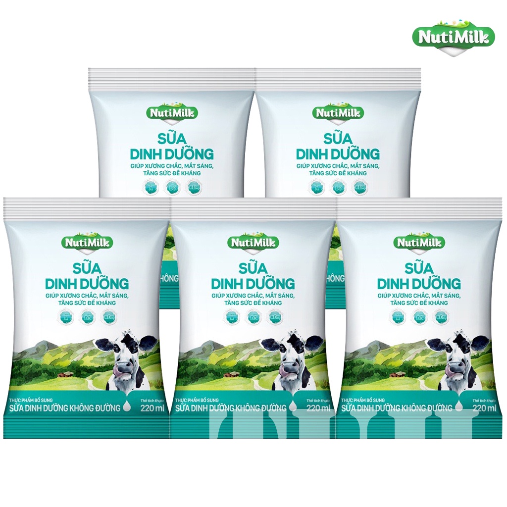 Giới thiệu Combo 5 Bịch Sữa tươi 100 điểm không đường NutiMilk 220ml/bịch-TUH