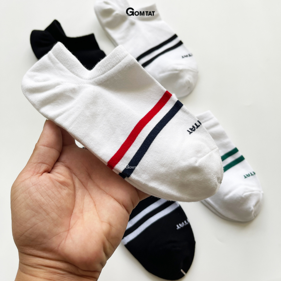 Combo 5 Đôi Tất Nam Nữ Cổ Ngắn Chất Liệu Cotton Cao Cấp, Vớ Cổ Thấp Unisex Họa Tiết 2 Sọc Ngang - GOM503-2SOC-CB5: Là loại vớ cổ ngắn với tone cơ bản, rất dễ để phối với giày thể thao, hoặc giày sneaker, chất liệu sợi cotton khử mùi thoáng khí, êm ái khi sử dụng.