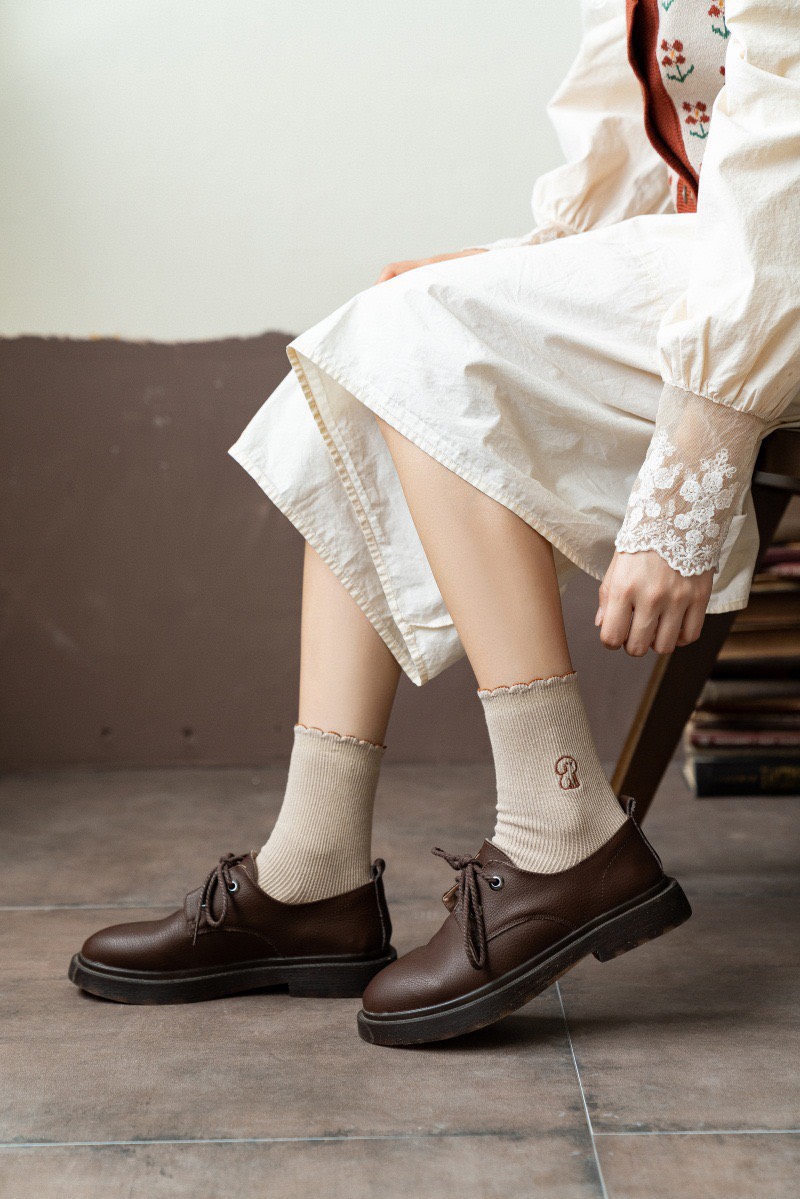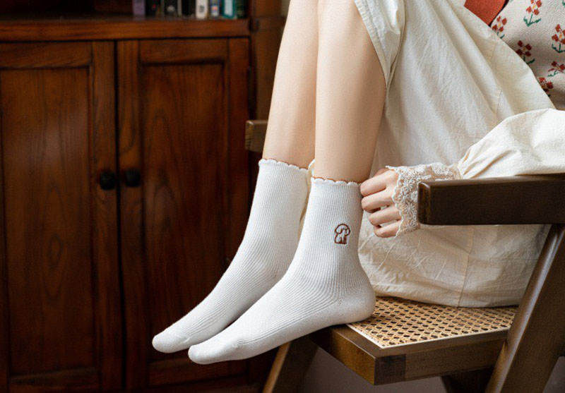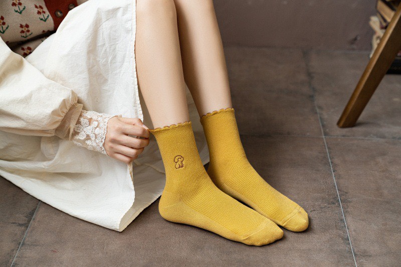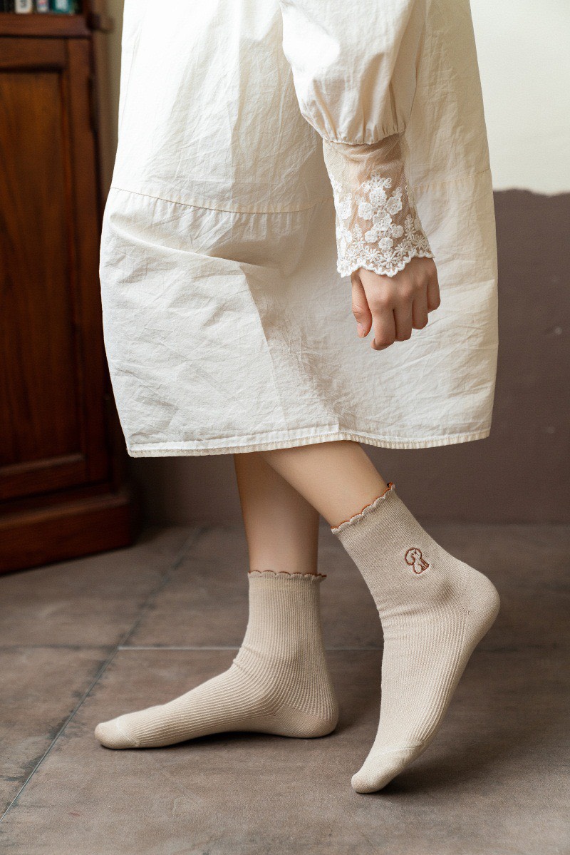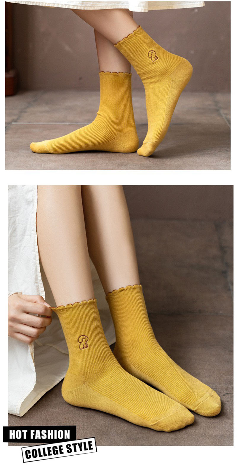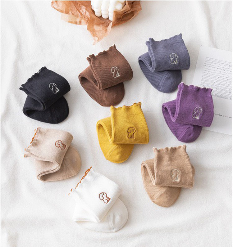 Giới thiệu Combo 5 Đôi Tất Nữ Cao Cổ Bèo Viền Màu Cực Xinh Phối Họa Tiết Cún Con Kute TN70
