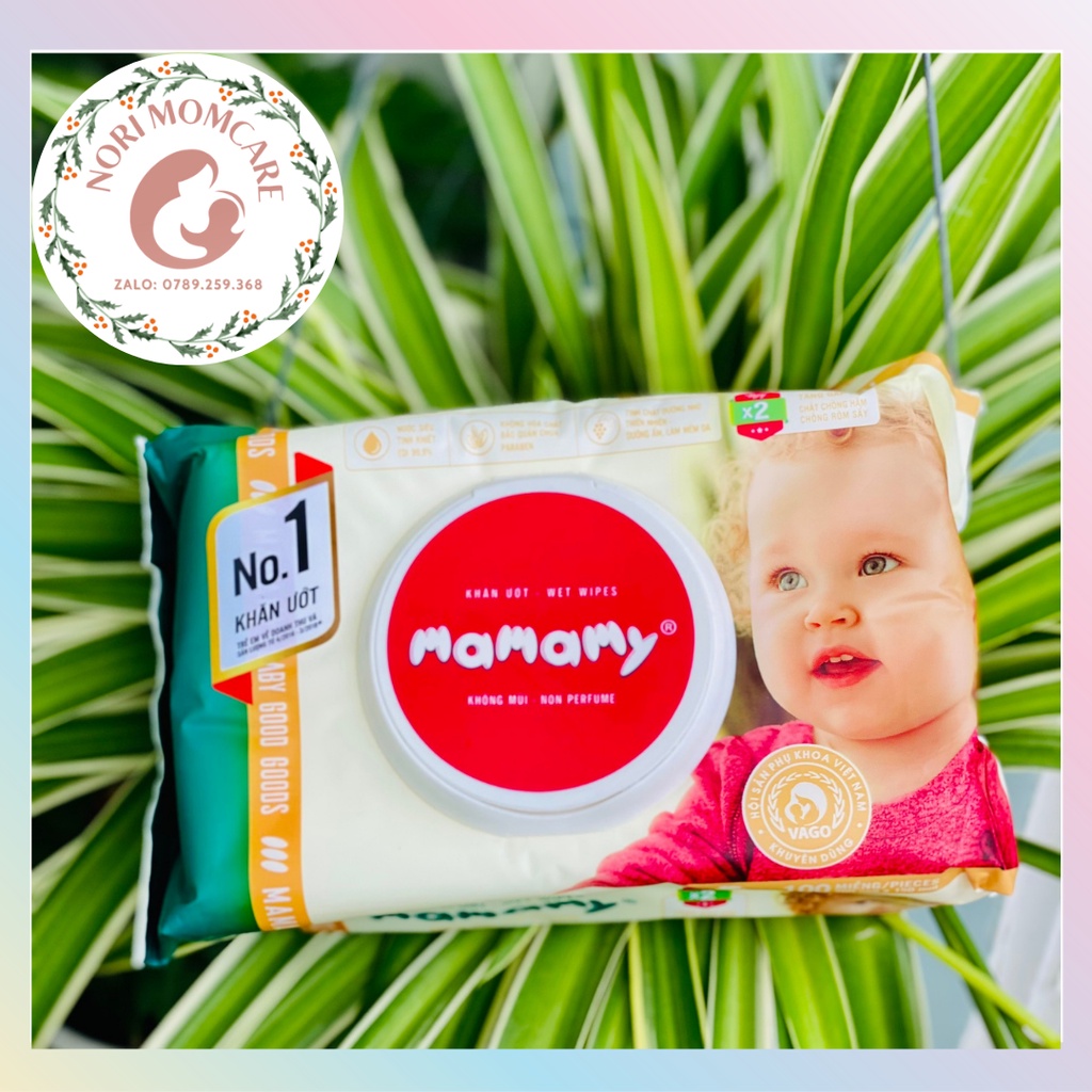 Khăn ướt chống hăm, kháng khuẩn an toàn cho bé Mamamy 100 tờ. Những đặc tính vượt trội chỉ có ở khăn ướt số 1 Việt Nam: - Chăm sóc và bảo vệ làn da bé 100% an toàn CHUẨN QUỐC TẾ. •Chứng nhận không hóa chất bảo quản(Paraben, MIT..) bởi SGS Thụy Sỹ. •Chứng nhận không kích ứng bởi Allergy UK (Tổ chức uy tín hàng đầu thế giới của Anh) & Viện kiểm nghiệm thuốc trung ương.100% AN TOÀN •Không hóa chất bảo quản(Paraben, MIT...). •Không kích ứng, không Tinopal. •Diệt khuẩn từng tờ bằng tia cực tím. •Được Hội sản phụ khoa Việt Nam khuyên dùng, cho cả trẻ sơ sinh.