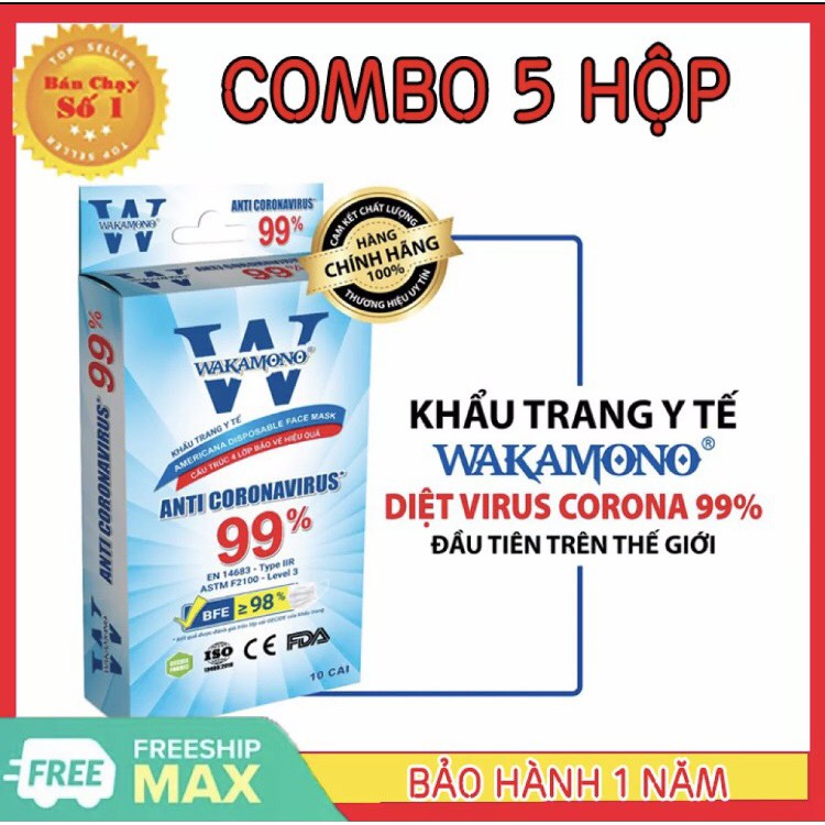 [ COMBO 5 HỘP ] KHẨU TRANG Y TẾ WAKAMONO NGƯỜI LỚN Giá HOSICO