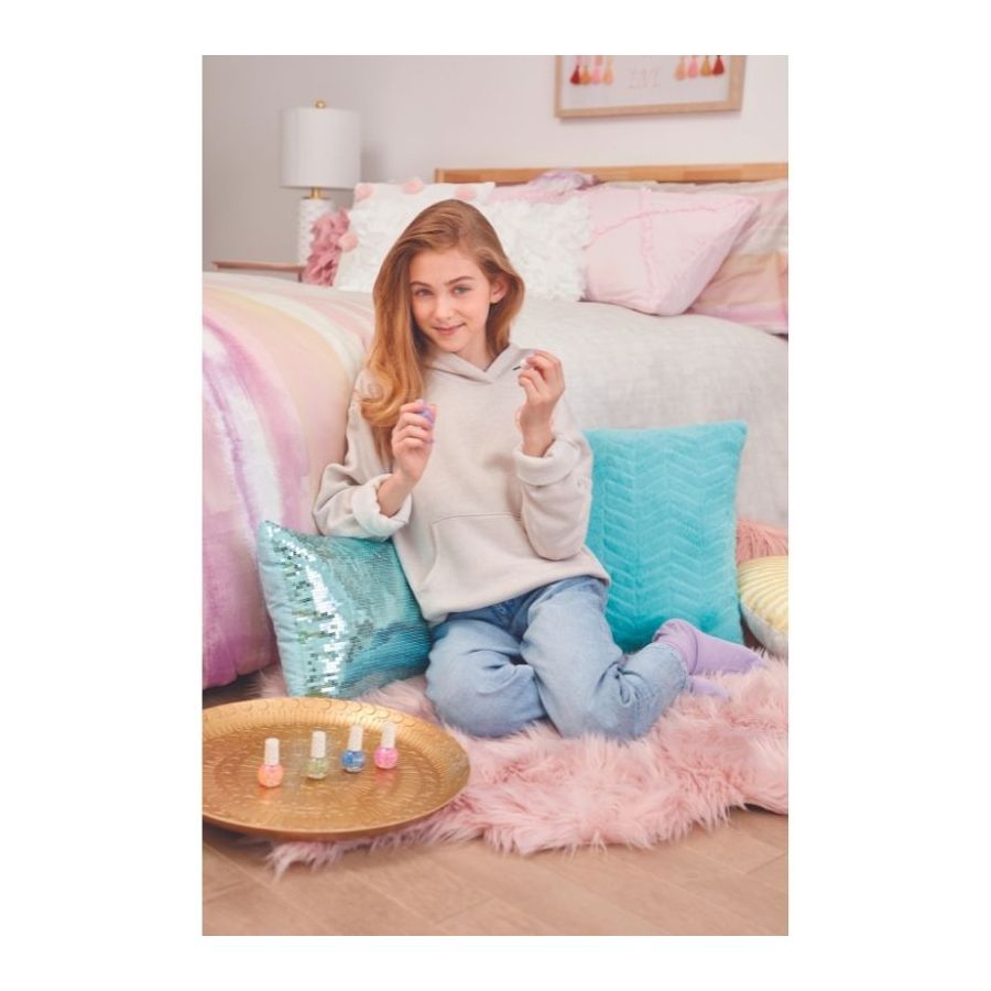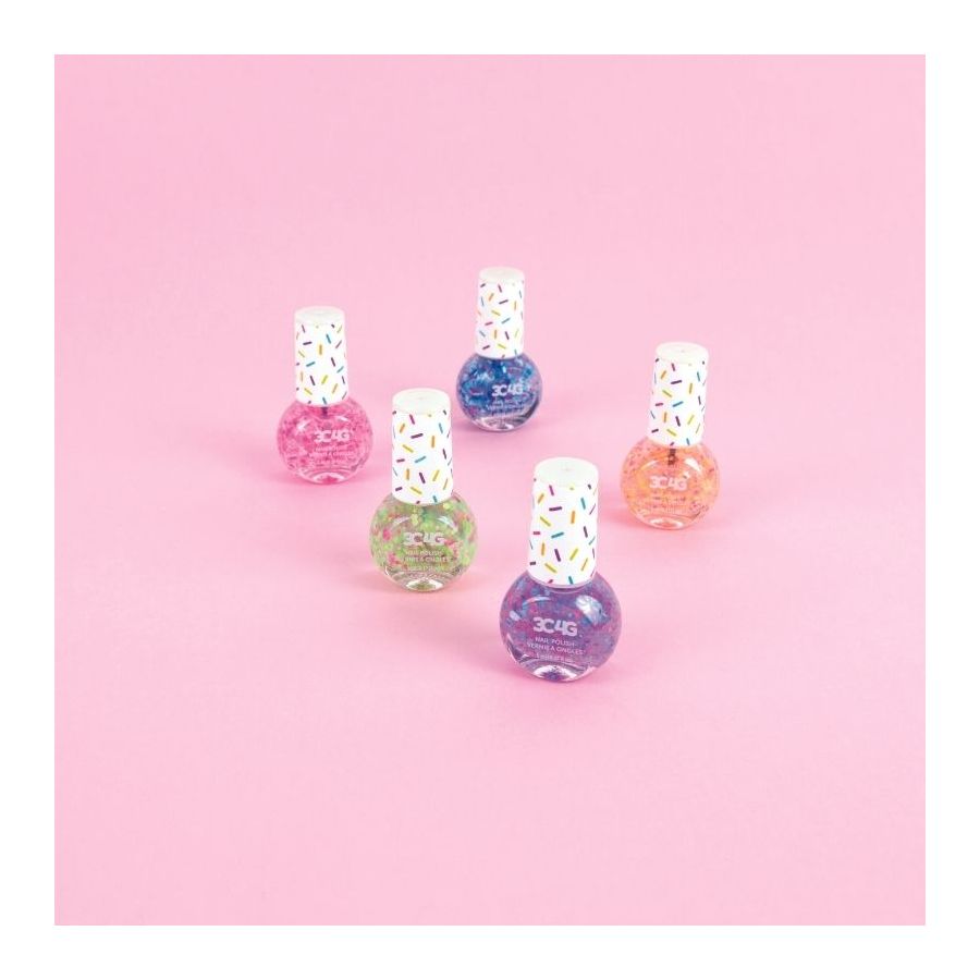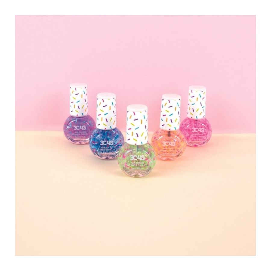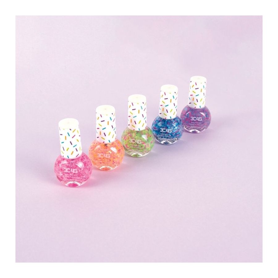 Bộ 5 lọ sơn móng với 5 màu sành điệu, được tô điểm thêm với chủ đề confetti, giúp bé yêu của bạn tô điểm cho bộ móng thêm phần xinh xắn.