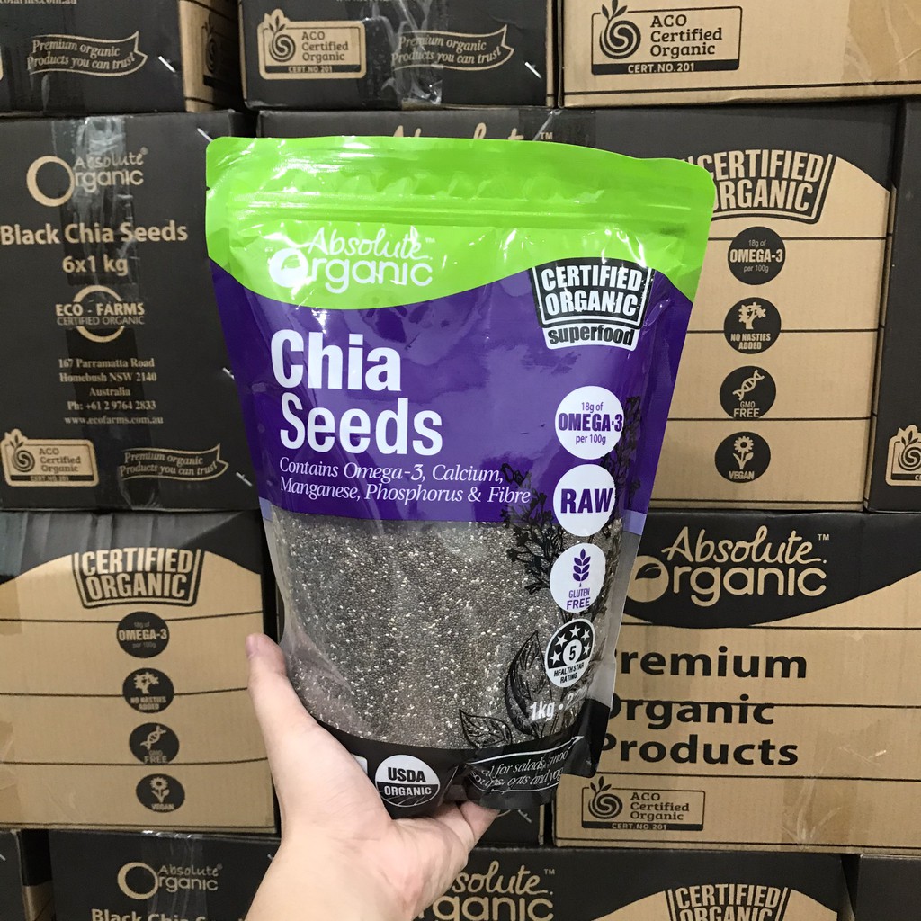 CÔNG DỤNG CỦA HẠT CHIA ÚC ABSOLUTE ORGANIC DATE 04/2023 - Tăng cường năng lượng. - Bổ sung chất xơ cho cơ thể. - Tăng cường sức khoẻ tim mạch. - Tốt cho người ăn chay và người bệnh tiểu đường. - Giảm cân - Kiểm soát trọng lượng cơ thể. - Làm đẹp da, tóc và móng tay khoẻ mạnh. * Hạt Chia Úc được chứng nhận Orgianic nghĩa là trong suốt quá trình gieo trồng cho đến khi thu hoạch, chúng hoàn toàn được gieo trồng tự nhiên, không sử dụng phân bón hoá học, không thuốc trừ sâu, không thuốc diệt cỏ.
