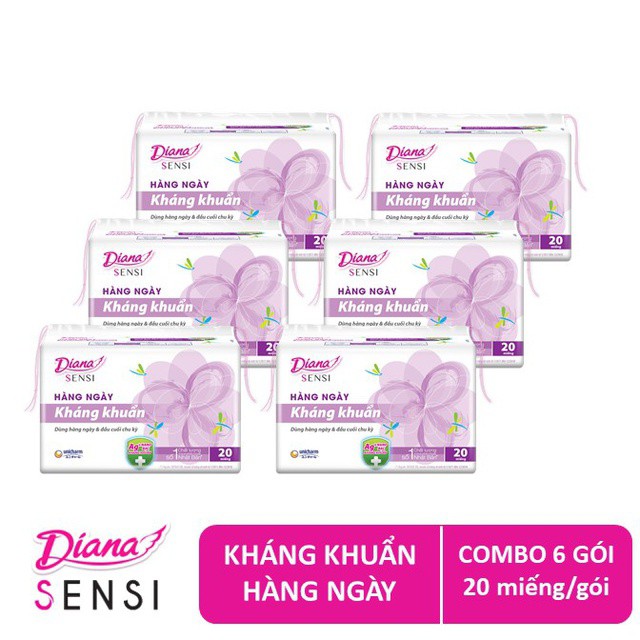 COMBO 6 GÓI BĂNG VỆ SINH HÀNG NGÀY DIANA KHÁNG KHUẨN 8/20 MIẾNG, MỖI MIẾNG DÀI 15CM, KHÔNG CÁNH (DÙNG NGÀY ĐẦU VÀ NGÀY CUỐI CHU KỲ HOẶC DÙNG MỖI NGÀY, KHÔNG PHẢI BĂNG DÙNG BAN NGÀY KHI ĐẾN THÁNG)