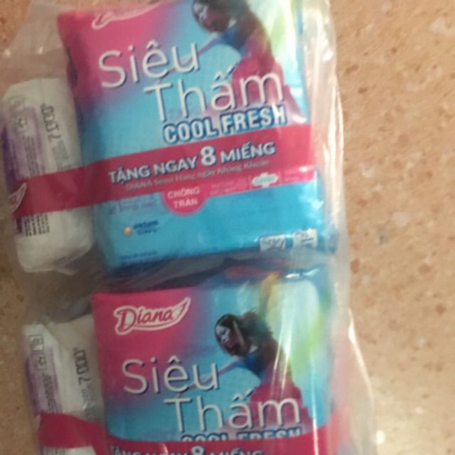 Sức Khỏe > Chăm sóc cá nhân > Chăm sóc phụ nữ > Băng vệ sinh có cánh & không cánh || Combo 6 gói bvs diana siêu thấm mỏng cánh cool fresh (8 miếng)23cm tặng kèm 3 gói bvs hàng ngày kk8