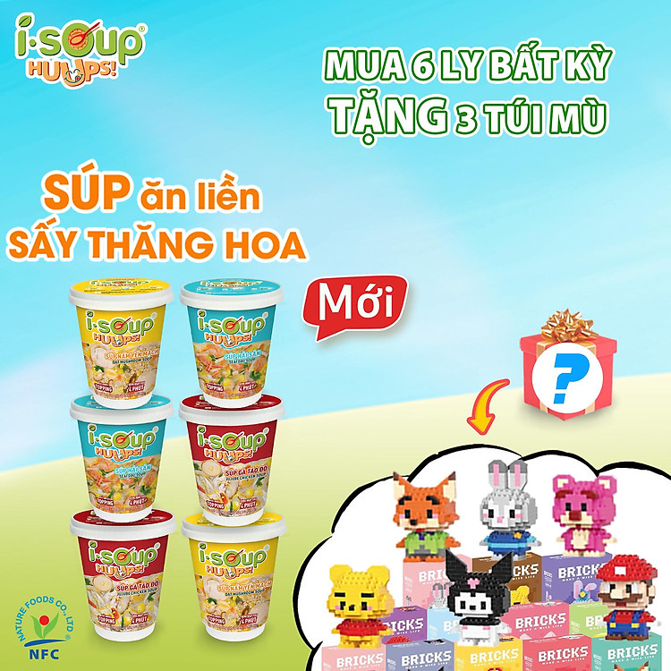 Combo 6 Ly ISOUP HUUPS! Bất Kỳ Tặng 3 Túi Mù - Súp Ăn Liền Sấy Thăng Hoa