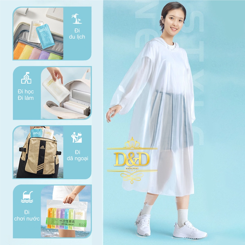 + Áo mưa du lịch, đi phượt, chơi nước… mặc một lần tiện lợi.
