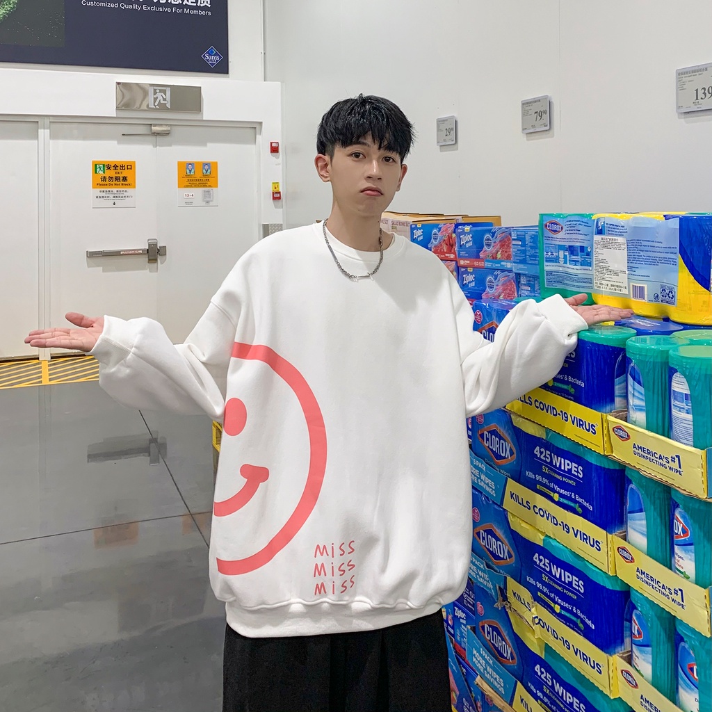 Thời Trang Nữ > Hoodie và Áo nỉ > Áo hoodies || Combo Áo đôi Sweater phong cách Ulzzang Hàn Quốc tay dài. Hình mặt cười Miss phong cách cá tính CoolZ C011