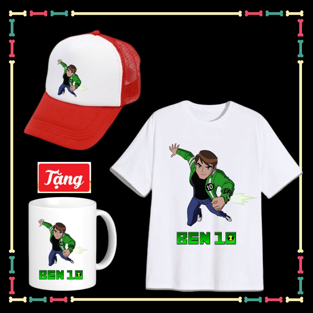 Combo Áo Mũ xịn xò cho trẻ em Mẫu Ben 10 Ben Ten Trẻ em yêu thích Tặng Kèm Ly Sứ Hình Ben 10