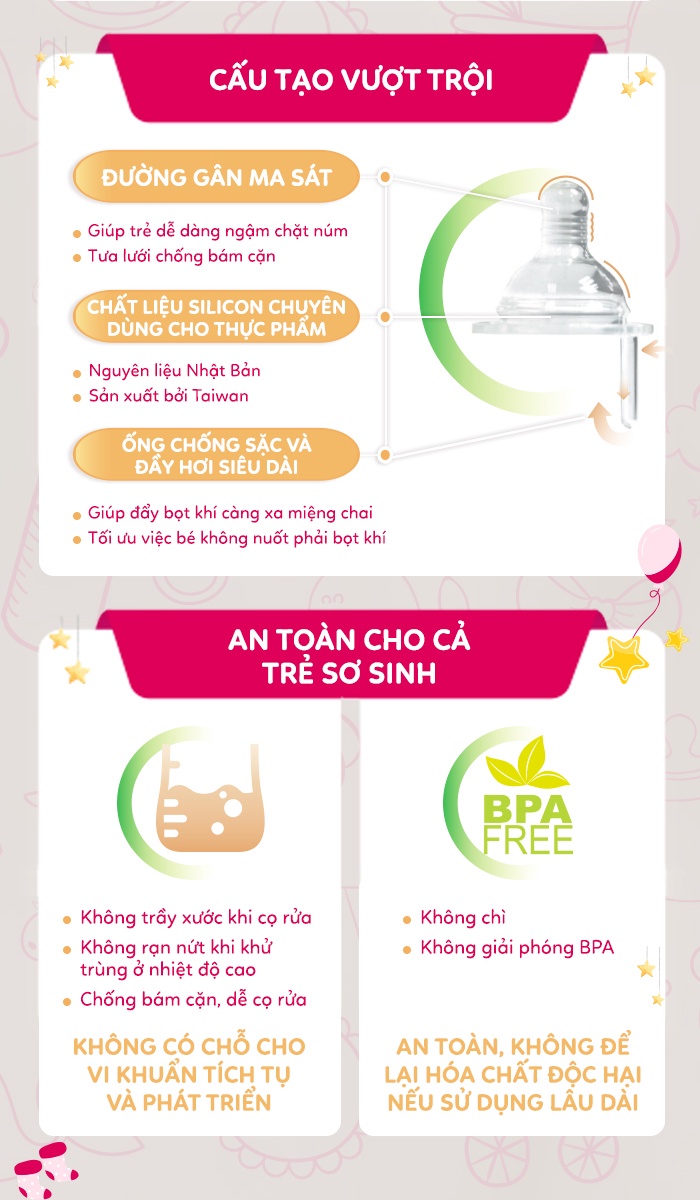 Núm ti - núm bình sữa làm từ silicon Nhật Bản chuyên dùng cho thực phẩm.