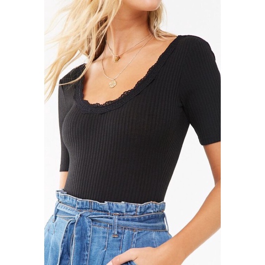 Combo Bodysuit len cổ ren tay ngắn A925