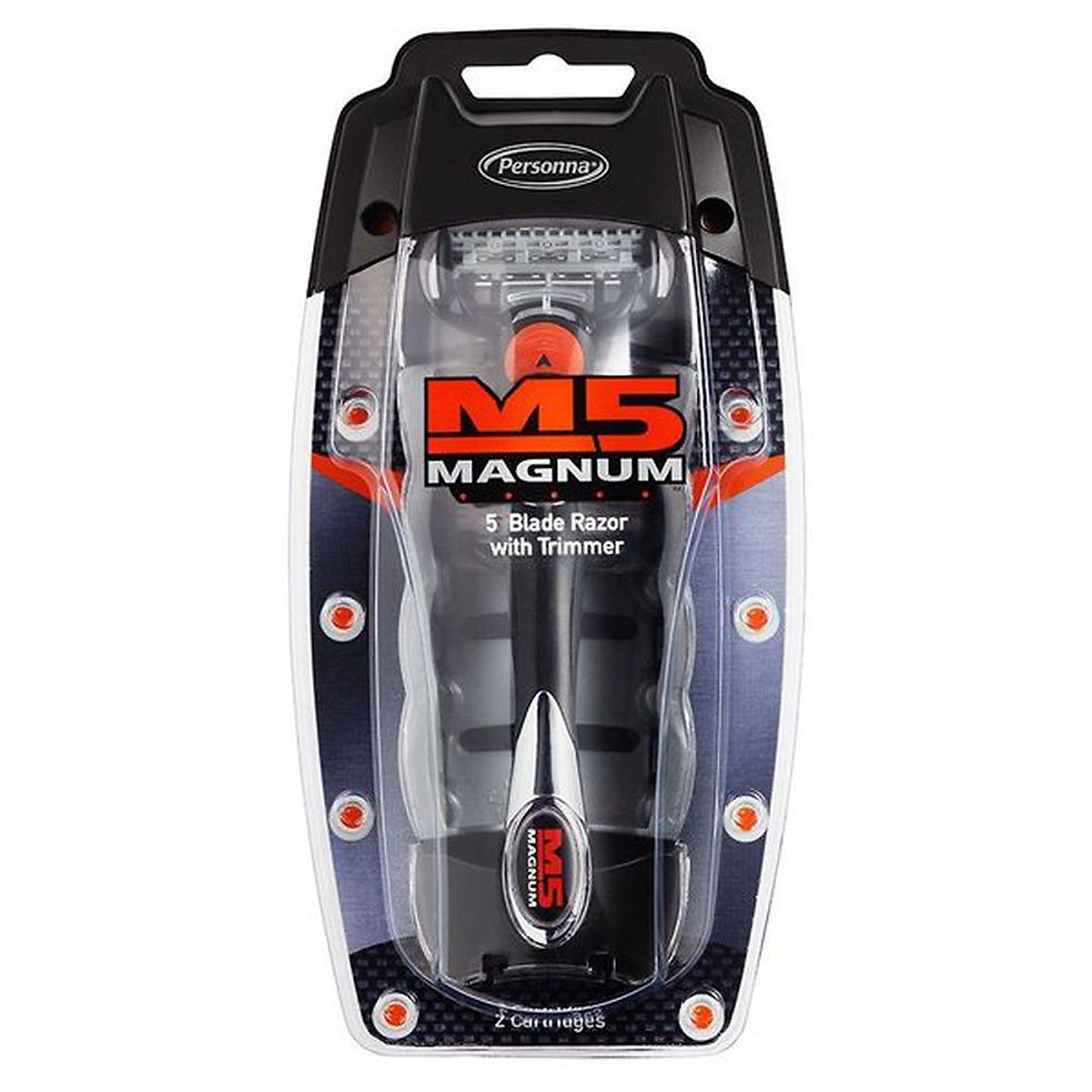 Combo dao cạo râu và hộp 4 đầu cạo thay thế Personna M5 Magnum gồm 1 cán, 1 lưỡi đi kèm và 5 lưỡi thay thế