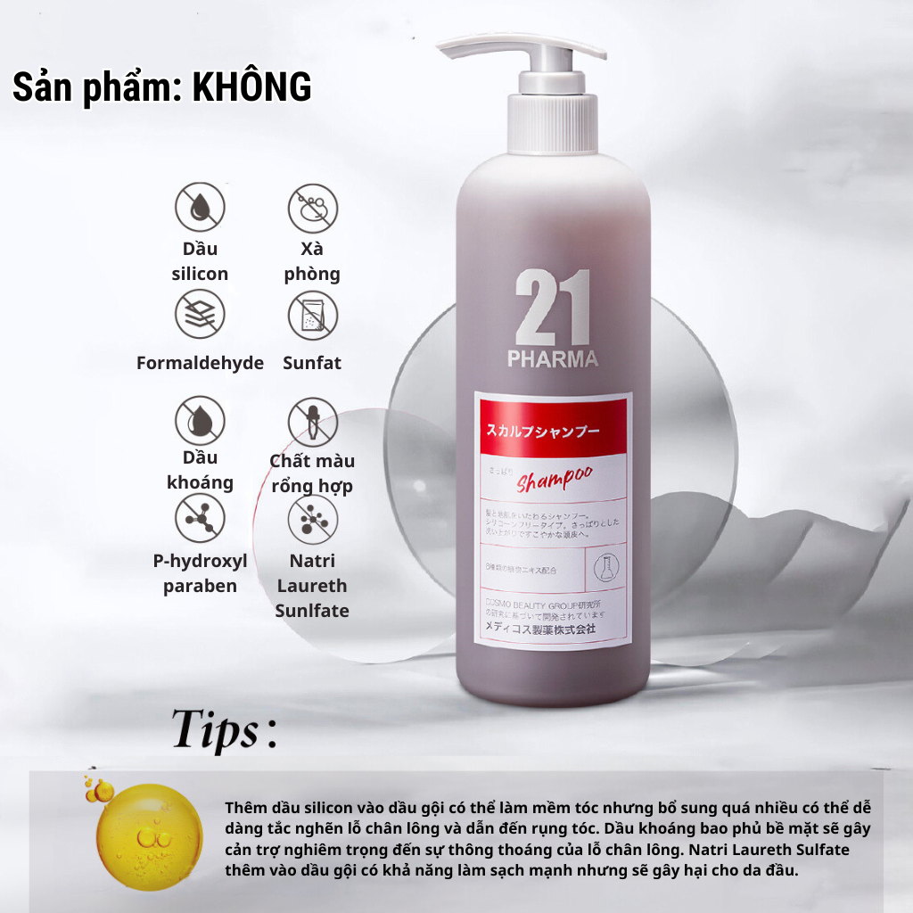 Combo Dầu Gội Giảm Rụng Tóc + Dâu Xả Dưỡng Ẩm Mêm Mượt Tóc Pharma 21 Nhật Bản - Chai 600ml