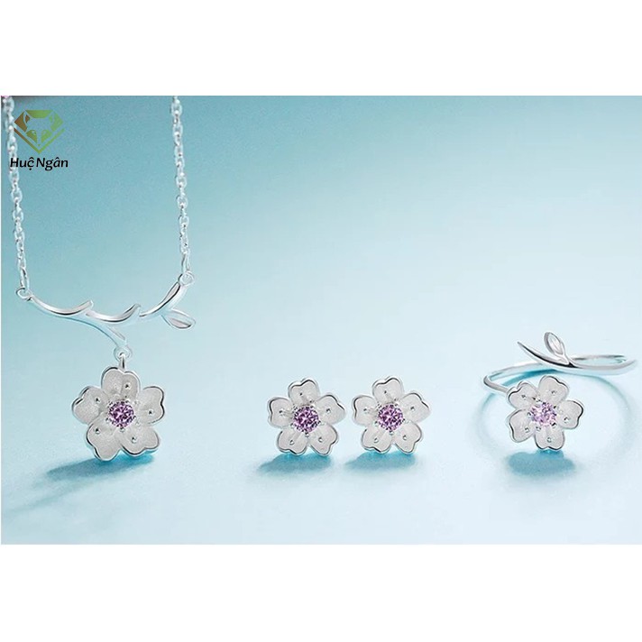 Giới thiệu Combo dây chuyền, nhẫn và bông tai bạc Ý 925 Huệ Ngân - Hoa anh đào