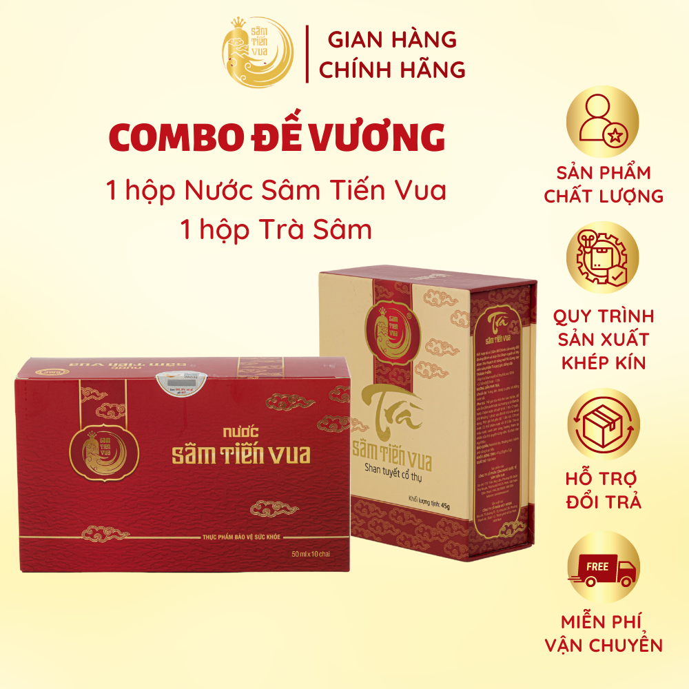 Bao gồm: 1 Hộp Nước Sâm Tiến Vua + 1 Hộp Trà Sâm Tiến Vua Shan Tuyết Cổ Thụ