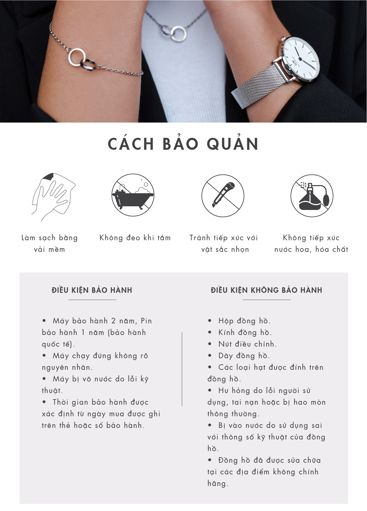 - Bộ sản phẩm gồm: Sản phẩm chính hãng, hộp, sổ bảo hành, túi Daniel Wellington.