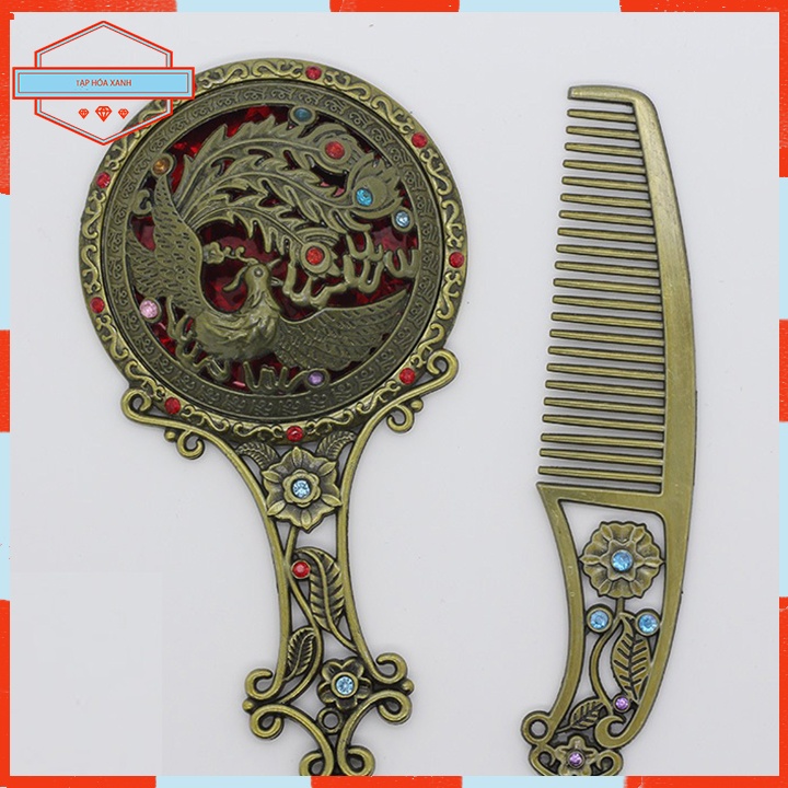 Combo Gương Lược Trang Điểm Họa Tiết Cổ Điển Cầm Tay Mini Dễ Thương Hot Tạp Hóa Xanh