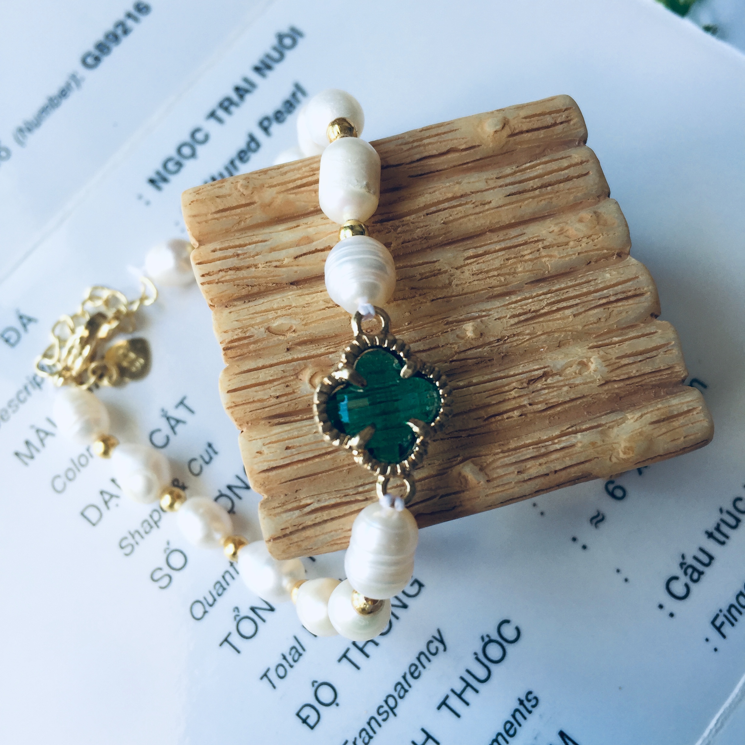| Kích thước | Hạt trai 6li - Cỡ vòng 17cm - thiết kế freesize - Hợp các bạn từ 42kg - 68kg |