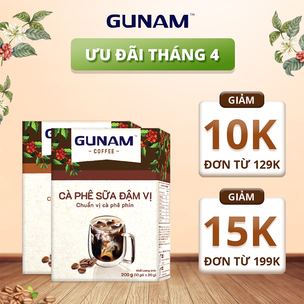 BỘ SẢN PHẨM BAO GỒM: 01 Cà phê hòa tan GUNAM bạc sỉu thơm béo (hộp 10 gói x 20g) 01 Cà phê hòa tan GUNAM đậm vị cà phê (hộp 10 gói x 20g)